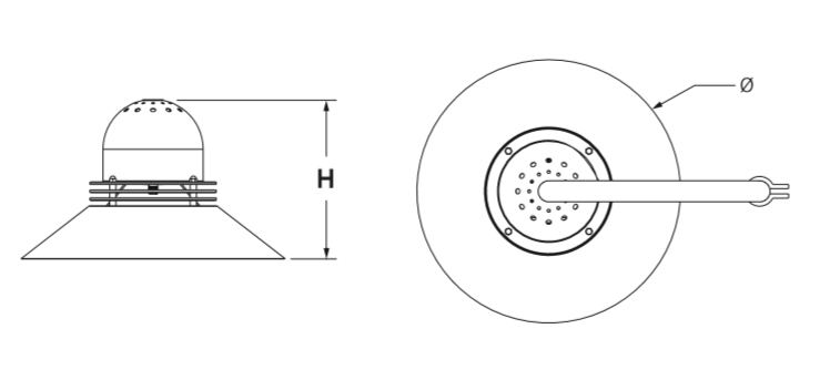 防护等级:IP65灯具尺寸:Ø453xH300mm配光角度:M201