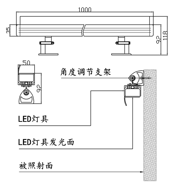 灯具尺寸:L:1000mm*W:50mm*H:*35mm(不含支架)