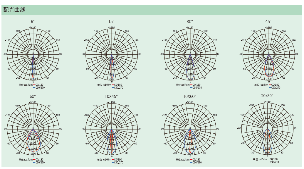 配光角度:6°、15°、30°、45°、60°、10*45°、10*60°、20*80°(可选)