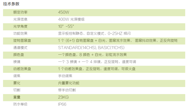一款 400W LED 大功率户外防水切割投影灯。采用压铸镁合金外壳,IP66 防护等级,采用自然散热技术,搭配智能温控系统,确保灯具稳定可靠。10° -55°手动变焦,角度定位精准,适用于大面积远距离长时间精准投影。搭载 8+1 颜色盘、6+1 旋转图案盘、棱镜可实现丰富多彩的动画效果,灵活的一体式切割系统,满足个性化投影需求。适用于主题公园、景区、标志性建筑、建筑楼宇、户外演出等场所。