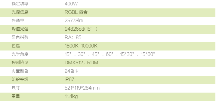 采用低碳环保设计、选用轻量化航空材料,整灯重量11.4kg,绿色照明能耗比达到2062lm/kg,全新高效大功率四合一RGBL封装LED技术,融合全新散热分布结构,确保LED在高强度运作下稳定输出,持久耐用,独特高阶光学设计,轻松驾驭单色及多色精准混合,同时达到最大输出,光效高达64lm/w,打造照明节能新概念。四段式智能调光技术,色彩变化过渡更细腻,铺光均匀自然。无论是地标建筑还是桥梁隧道,都能展现非凡光效。恒光恒色,持久如一,照出夜间炫彩画卷。