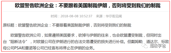 2018年,美国发出威胁,谁敢在伊朗投资就制裁谁。气的欧盟也不得不宣布,谁敢从伊朗撤资就制裁谁。